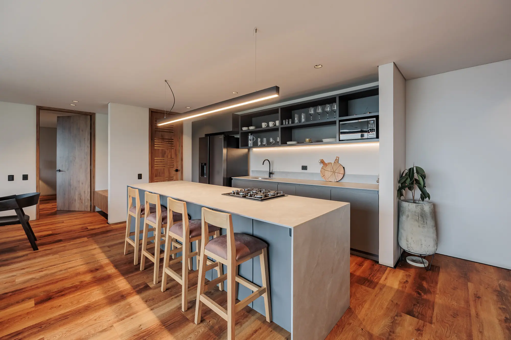 Experience elevated comfort in our most exclusive apartment. The Suite Deluxe is designed for those who value space, sophistication, and breathtaking views. With elegant finishes and generous areas, it’s a refined retreat for long stays or indulgent escapes.